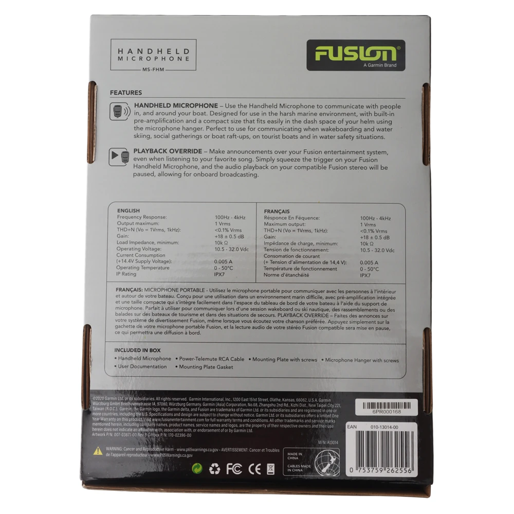 Fusion Marine MS-FHM Handheld Microphone Specifications:
