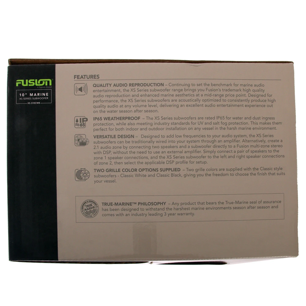With an IP65 weatherproof rating, True-Marine accreditation and an industry-leading 3-year warranty, you can enjoy peace of mind that your Fusion XS Series Classic Marine Subwoofer is built to last.